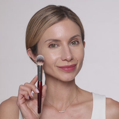 Press the brush into the skin to get a similar effect as using a sponge, but without the product absorbing into the tool and remaining on the skin.