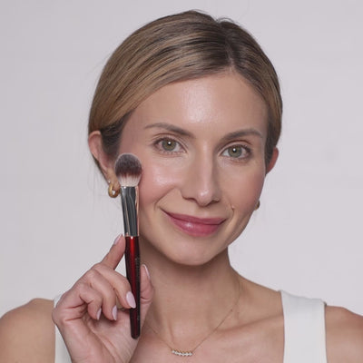 The perfect brush to use on all powder formulations, pressed or loose. Use the flat side to pick up powder and press on the skin, setting the center of the face precisely or use it to set under the eyes.